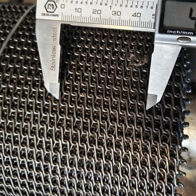 The compound belt is essentially a balanced spiral belt that has multiple spirals and cross rods per pitch. This compound structure closes up the apertures within the belt, giving compound weave its characteristic high density and flat surface. It is similar to a balanced weave besides smaller opening and far denser weave. As a result of this construction, Compound Weave Conveyor Belts offer an extremely close and flat mesh for applications where very small items are being conveyed. The compound weave also provides a uniform heat transfer across the belt due to its high density and smooth carrying surface. These characteristics make compound weave a popular choice in a wide variety of applications, ranging from biscuit baking to sorting small mechanical components.